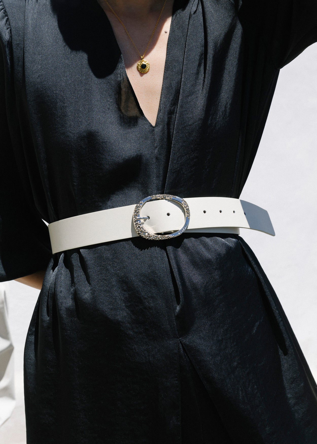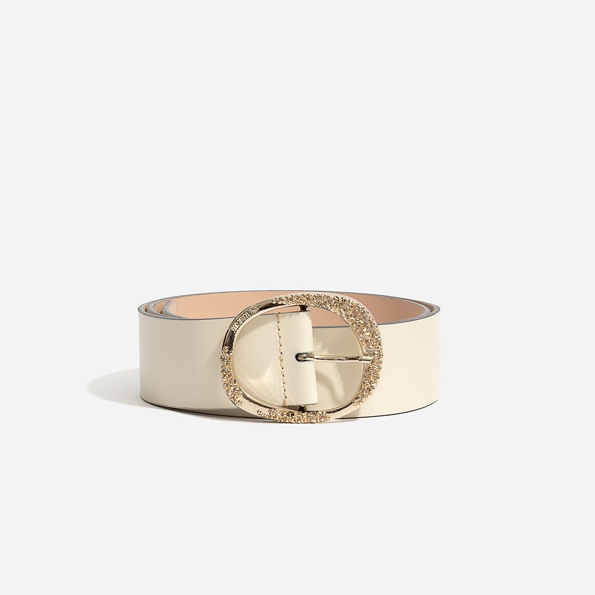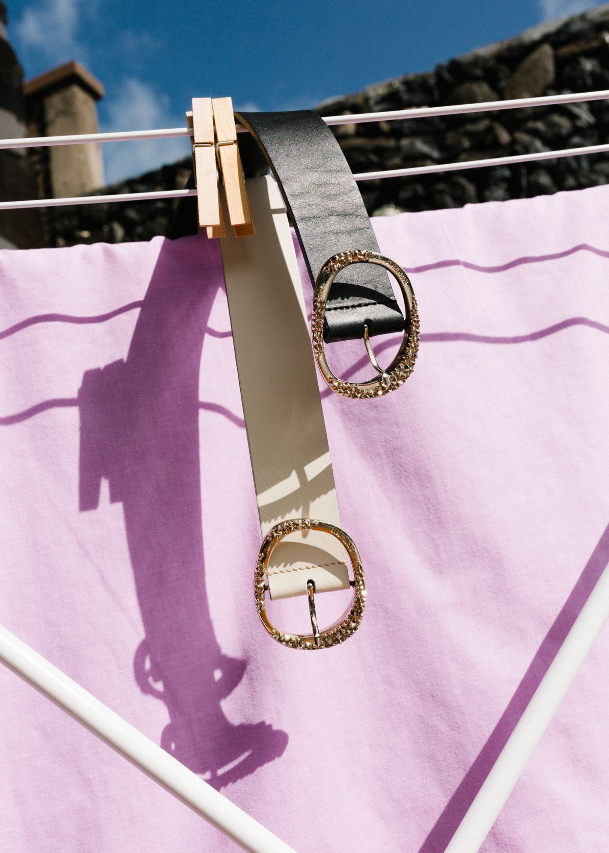 Cinturón MATILDE realizado en piel vacuno de alta calidad elaborados artesanalmente en Valencia por una familia de cinturoneros. Cantos en negro tintados con pincel a mano. Hebilla dorada exclusiva de JIMENAS fabricada en Petrer (Alicante).