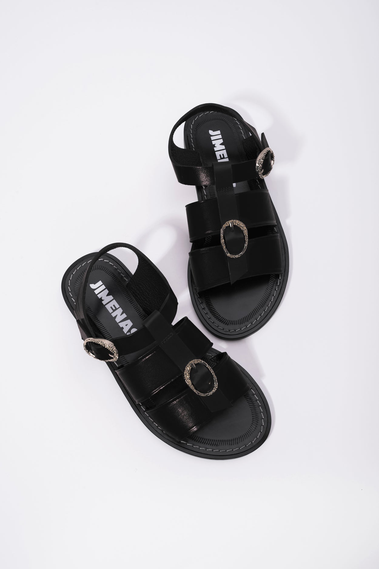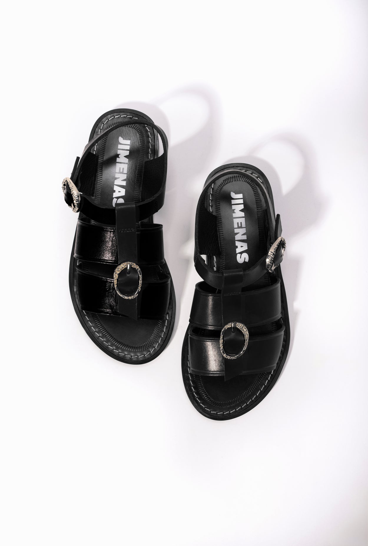 Nuestro modelo Jaimita es una sandalia de verano realizada en piel de vacuno premium de alta calidad. Lleva un cerco grabado en la suela de cuero. Jaimita cuenta con sujeción al tobillo para una mayor comodidad al caminar. Una tira central de un color más oscuro une las tiras delanteras cerrando con una de nuestras icónicas hebillas, que son diseño exclusivo y patentado de JIMENAS.