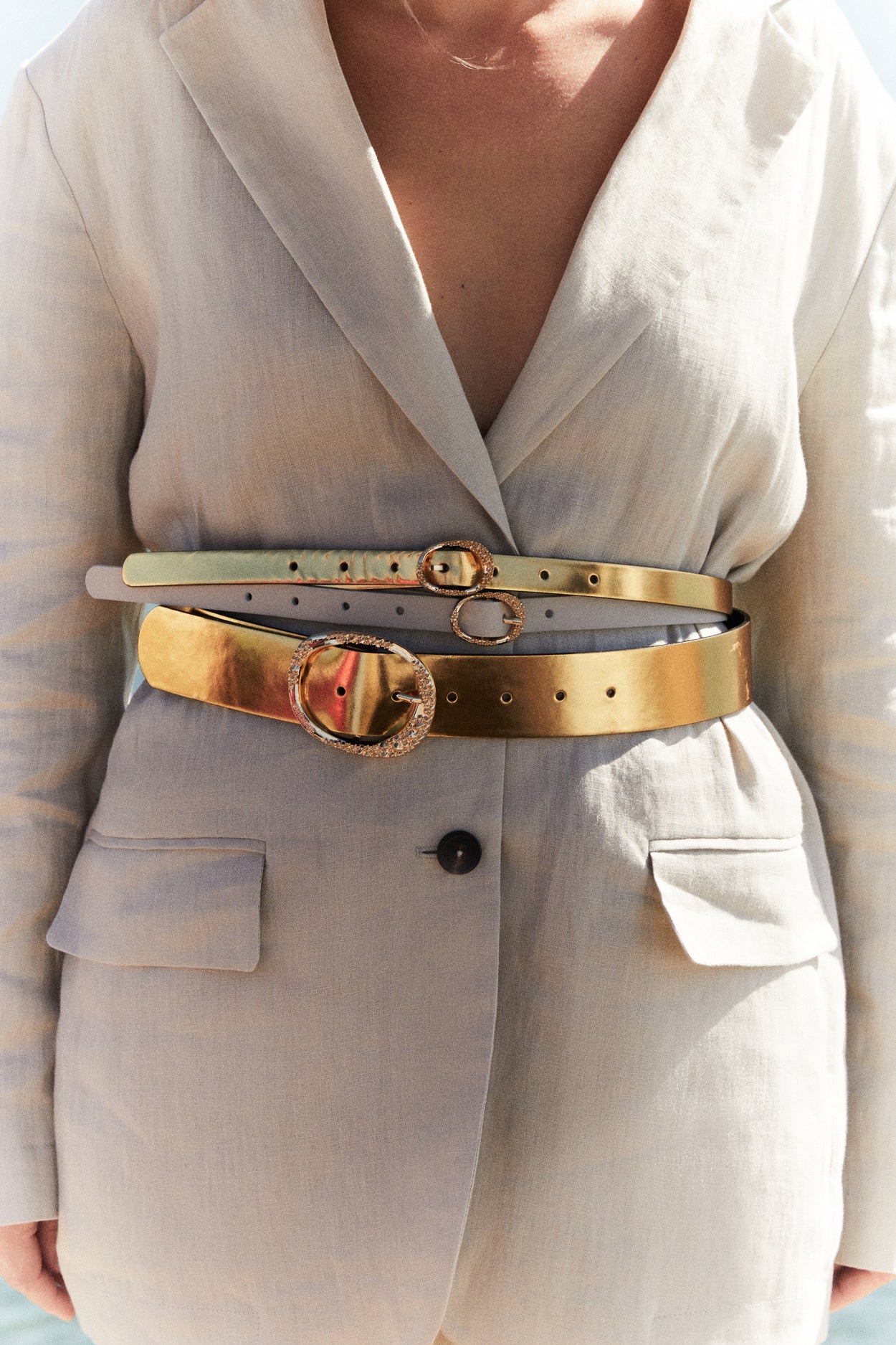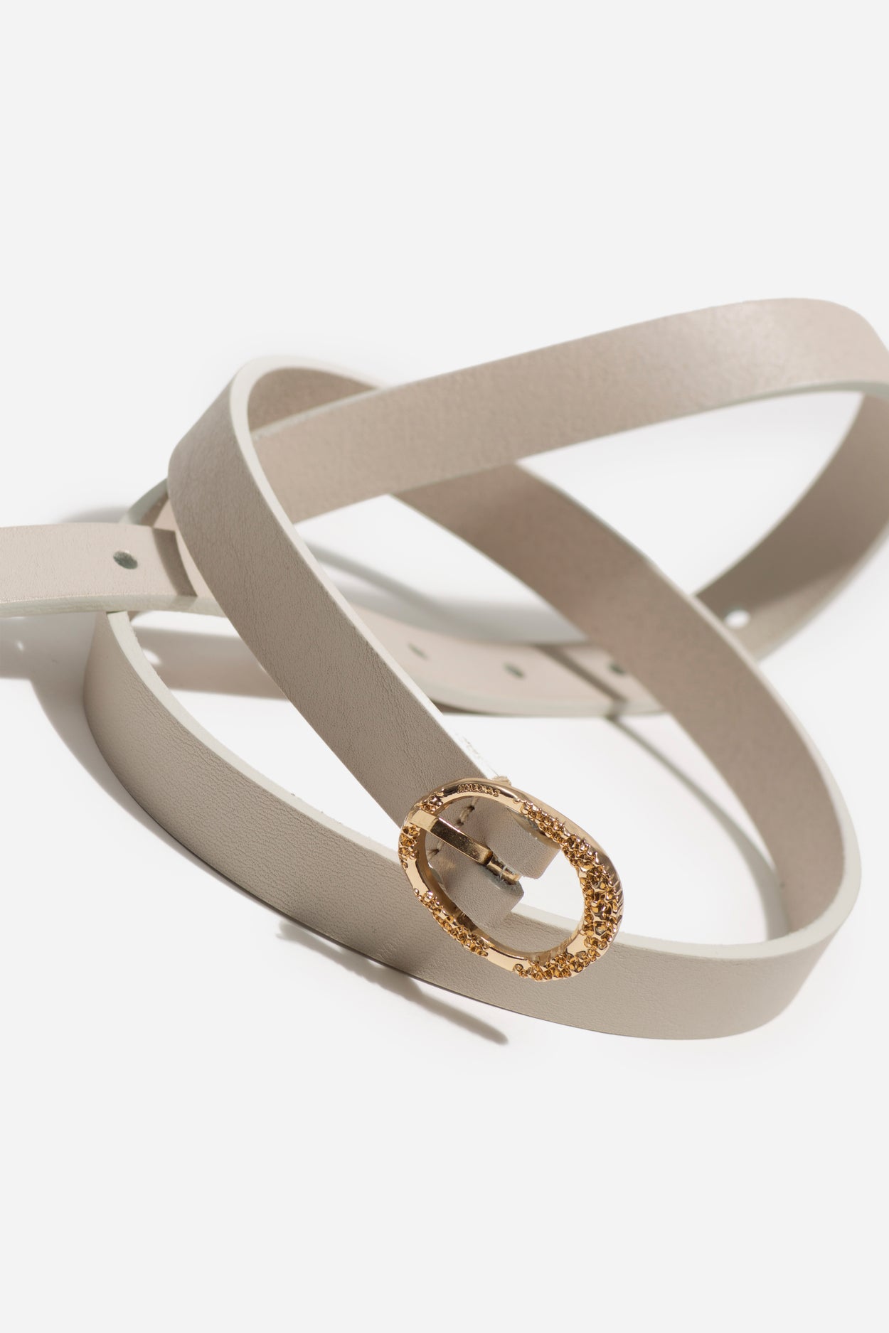 Cinturón MATILDITO realizado en piel vacuno de alta calidad en color crema elaborados artesanalmente en Valencia por una familia de cinturoneros. Hebilla dorada exclusiva de JIMENAS fabricada en Alicante.