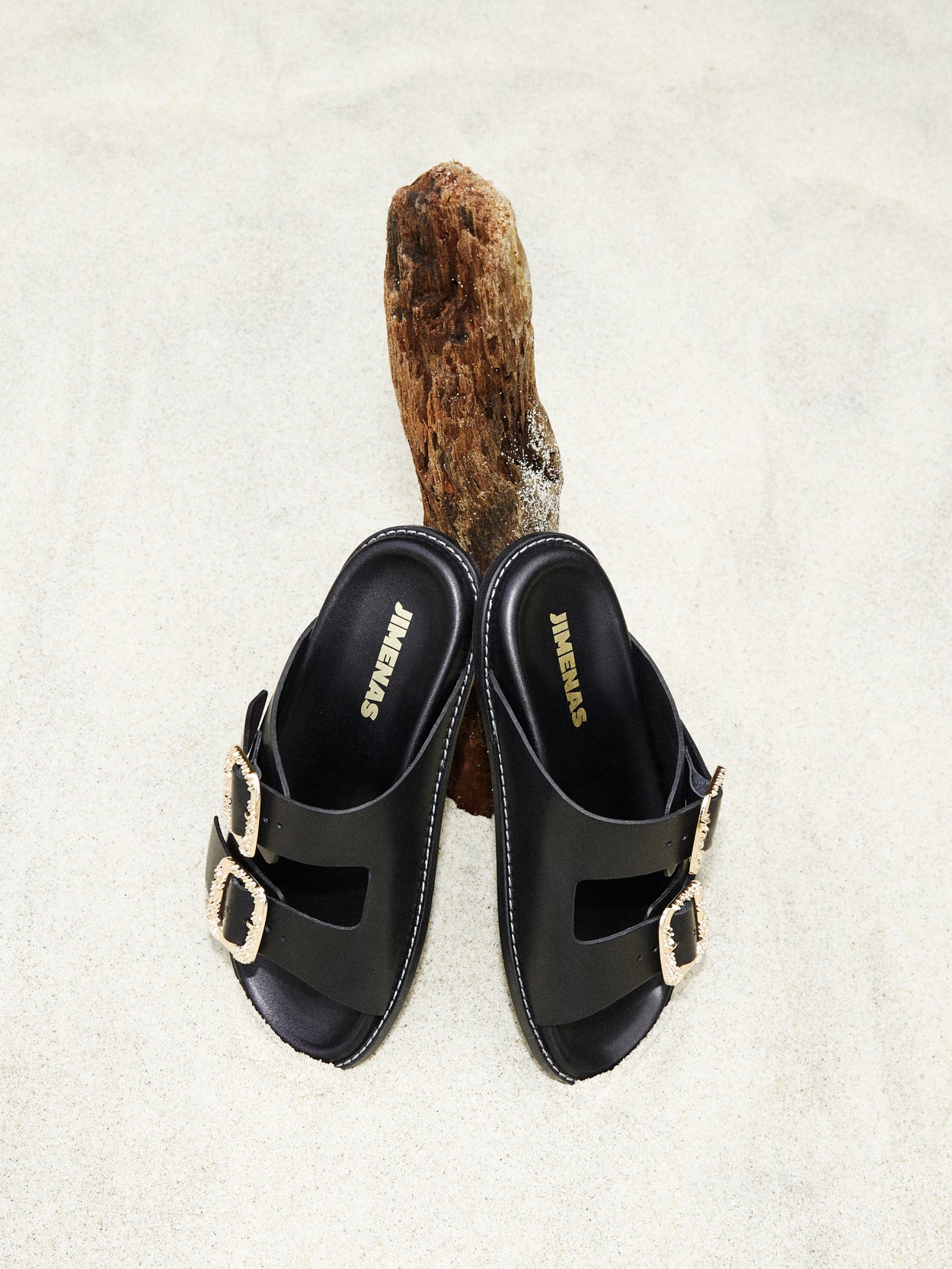 El modelo CARLOTA es un nuevo diseño muy especial realizado en una maravillosa piel vacuno en nuestro icónico color cognac, lleva toda la carga de ADN JIMENAS. Es la misma calidad de piel y color que nuestro modelo FIGUE. Llega para quedarse y acompañarnos en todos nuestros looks del día a día. Un modelo fácil, cómodo y todoterreno que hemos acompañado con un nuevo diseño de hebillas más rectangular exclusivo de JIMENAS, con nuestro trabajo de gotas y tachas en relieve, son auténticas piezas de joyería.