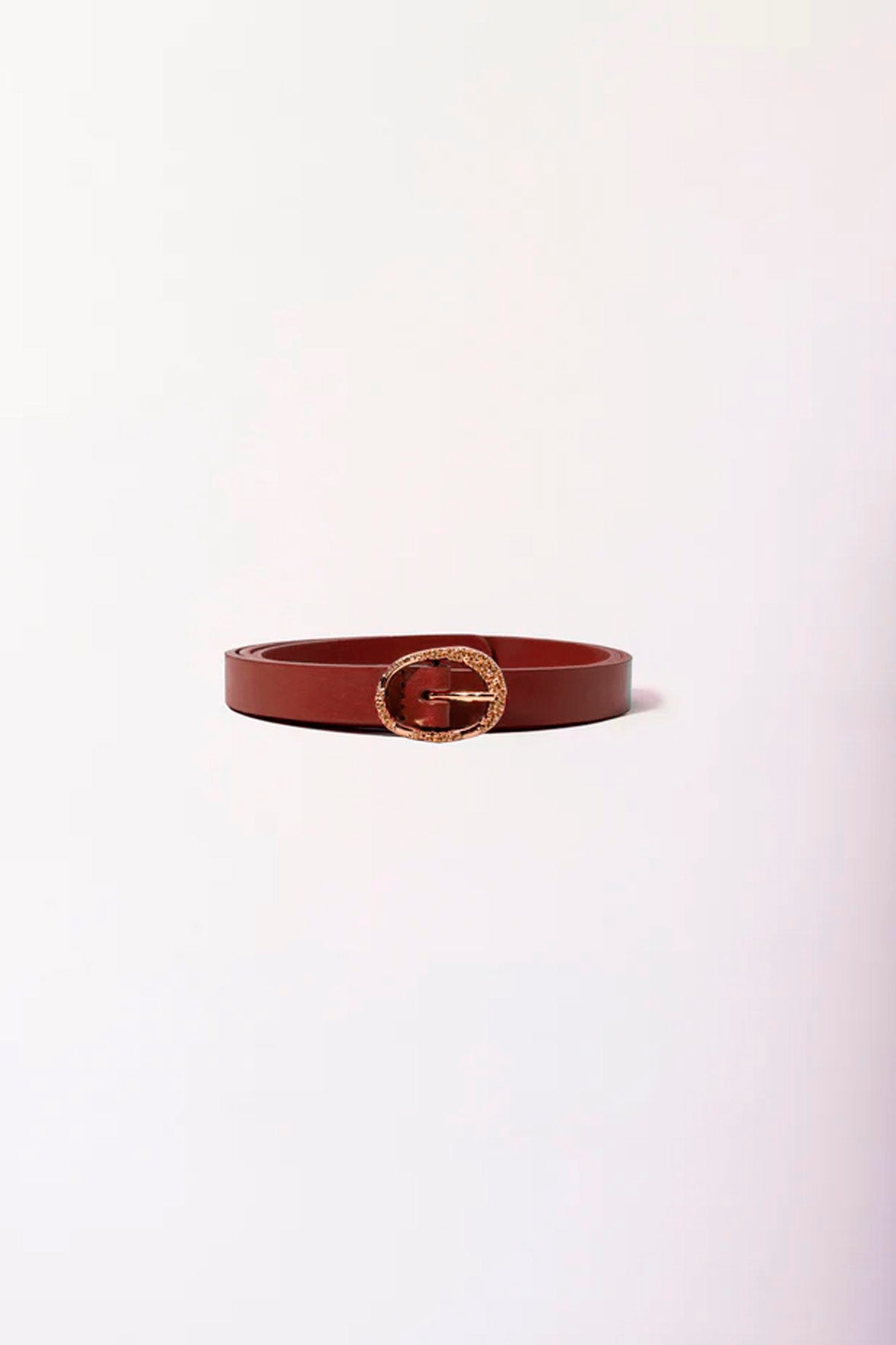 Cinturón MATILDITO realizado en piel vacuno de alta calidad en color mattone elaborado artesanalmente en Valencia por una familia de cinturoneros. Hebilla dorada exclusiva de JIMENAS fabricada en Alicante.