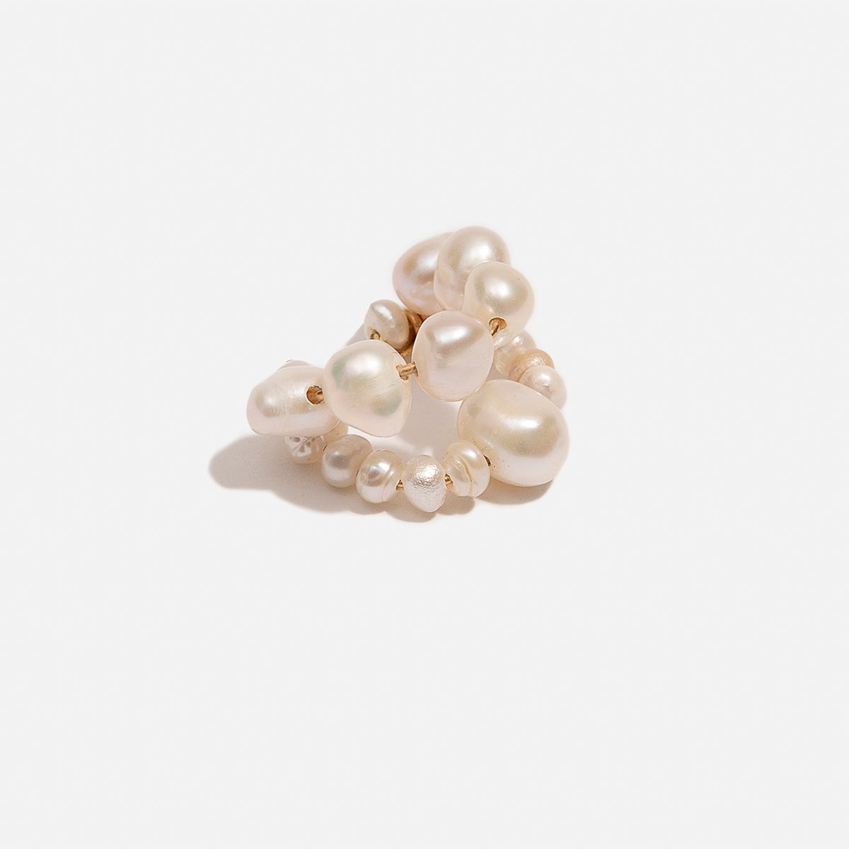 Diseño realizado por JIMENAS X PHILOMENA, hechos a mano, uno por uno por Katia en A Coruña. Hilo bañado en oro y perlas cultivadas pasadas una por una. El tamaño y la forma de las perlas varía de una pieza a otra.