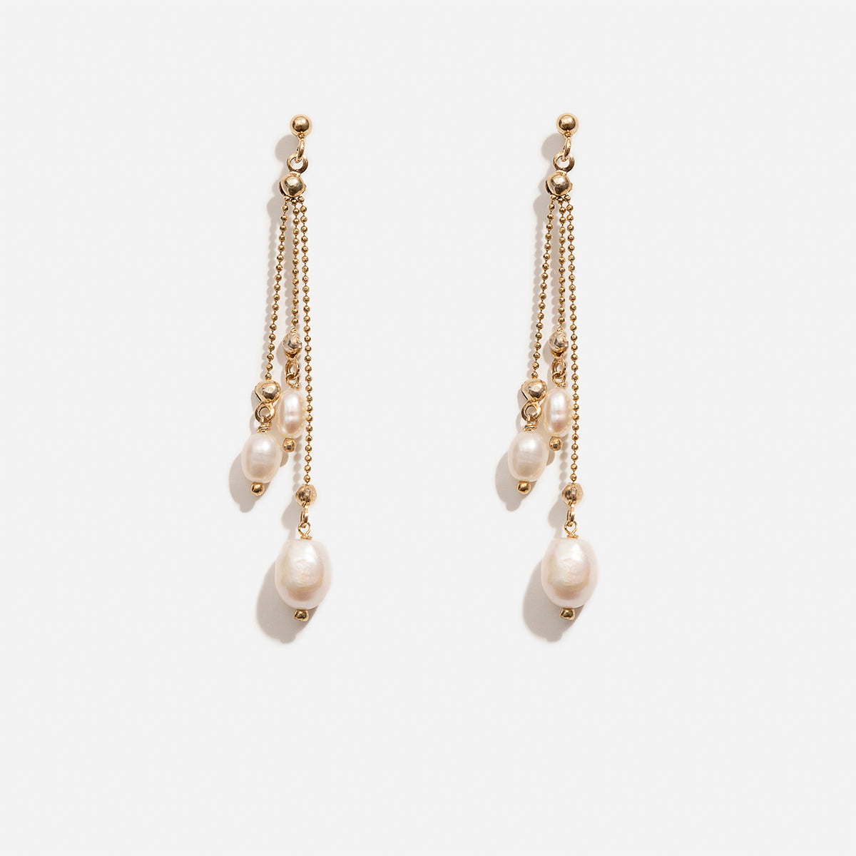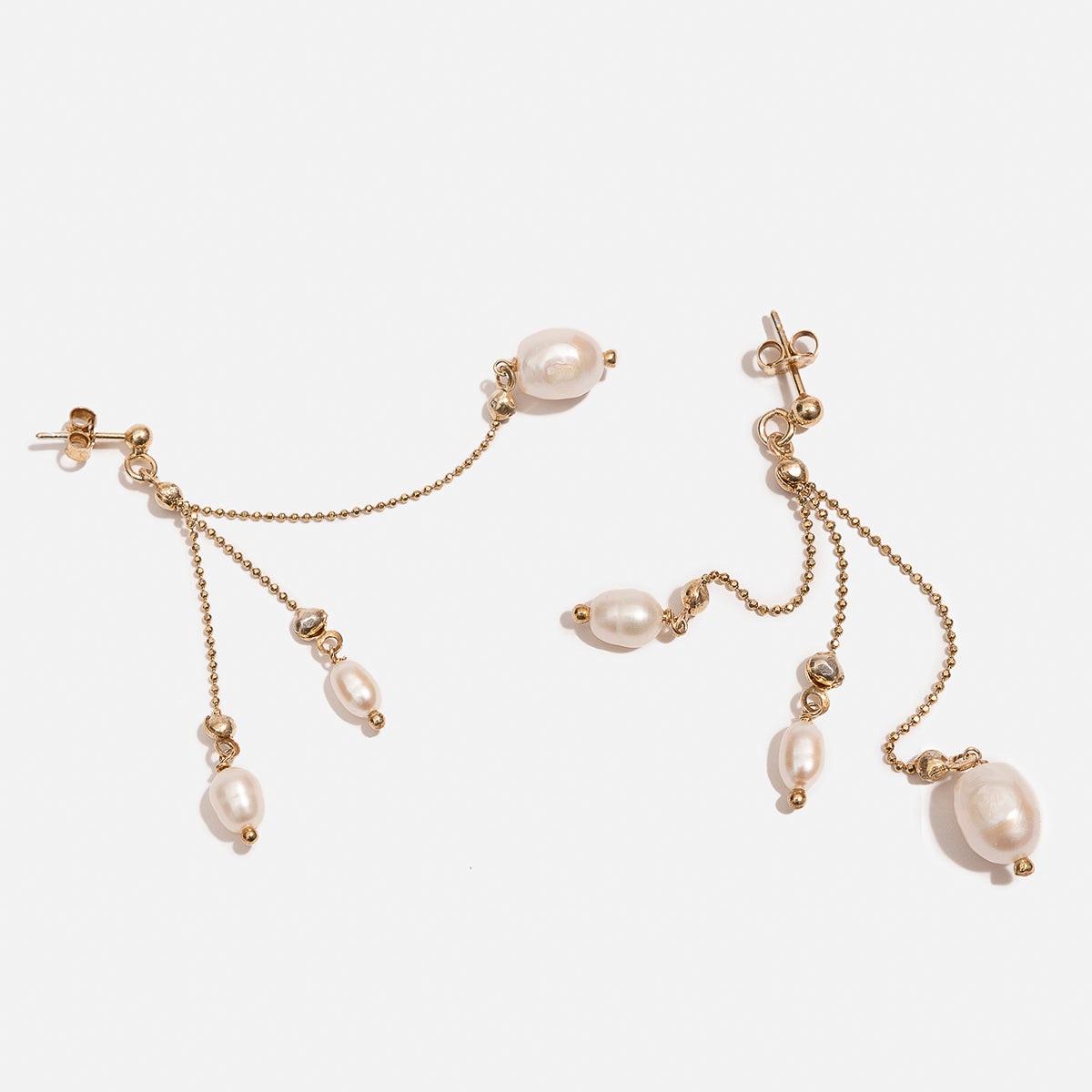 Diseño realizado por JIMENAS X PHILOMENA, hechos a mano, uno por uno por Katia en A Coruña. Hilo bañado en oro y perlas cultivadas pasadas una por una. El tamaño y la forma de las perlas varía de una pieza a otra.