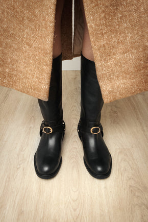 Bernadette es nuestra primera bota alta. Está realizada en piel premium de alta calidad con nuestra icónica hebilla en el frontal. Va enteramente forrada en piel y su tacón cómodo hará que las caminatas diarias sean un paseo sobre algodones.