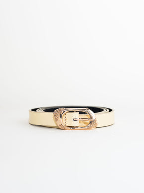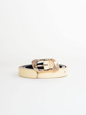 New BIM BIM belt made of high-quality black cowhide, handcrafted in Valencia by a family of belt makers. The gold buckle features an organic design, exclusive to JIMENAS, and is made in Alicante.