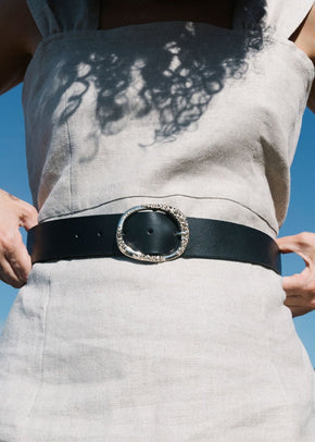 MATILDE belt made from high-quality cowhide , handcrafted in Valencia by a family of beltmakers. Hand-brushed black edges. Exclusive JIMENAS silver buckle, made in Alicante.