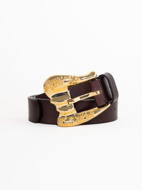 SIMONA belt made of cowhide in classic Testa di Moro color (very dark chocolate color) handcrafted in Valencia Made by a family of belt makers. Black-tinted edges. Exclusive JIMENAS gold buckle, made in Alicante.
