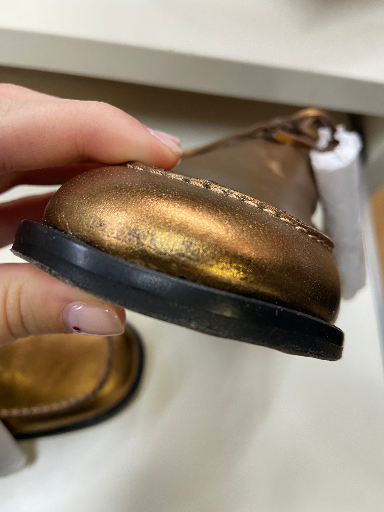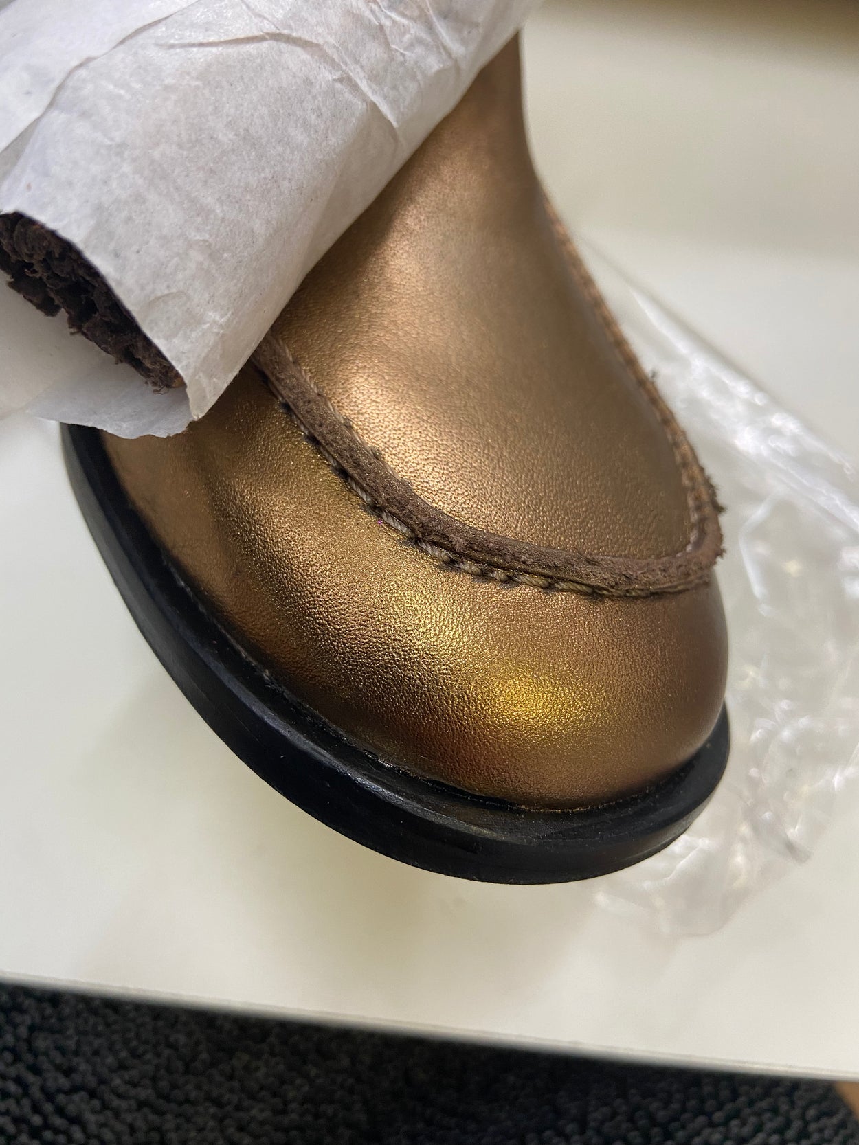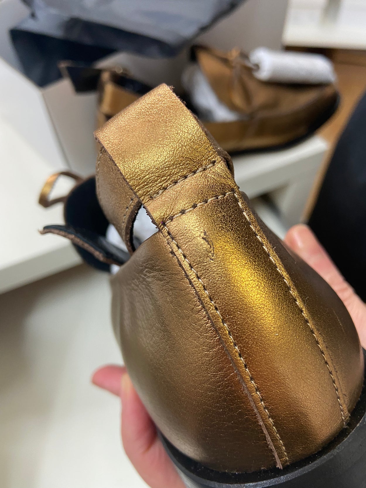 Le mocassin Diega est confectionné en cuir de vachette de première qualité avec une finition bronze métallisée. Il est doté de pompons surdimensionnés noués par un nœud et entièrement doublé de cuir, avec un logo embossé sur la semelle intérieure. La semelle est en cuir naturel de haute qualité. La bride cheville est amovible ou amovible. Les boucles sont une création exclusive JIMENAS, développée à Petrer, Alicante.