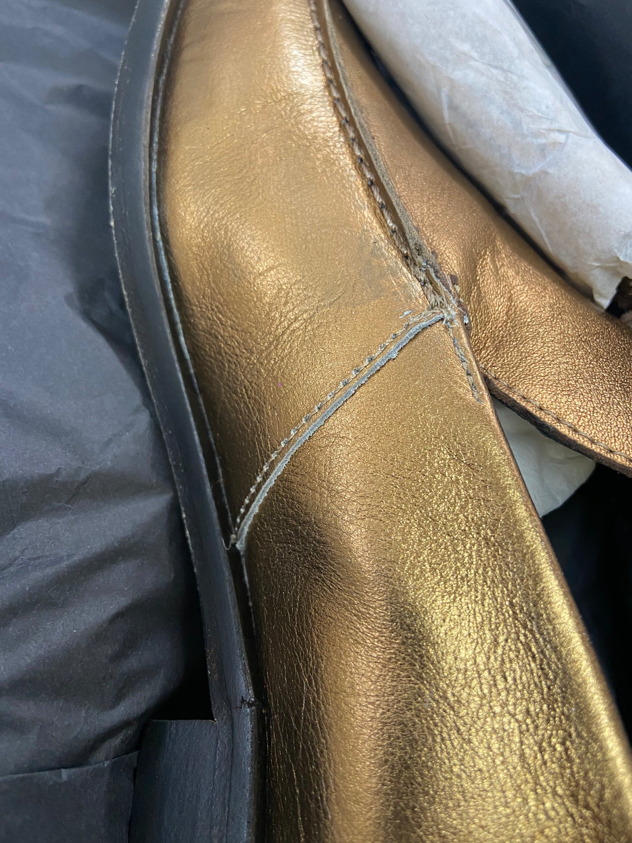 ÉCHANTILLONS/PAIRES PRÊTS POUR SÉANCES PHOTO/IMPERFECTIONS MINCES : Les semelles peuvent présenter des signes d'usure suite à une séance photo en intérieur, une décoloration, de petites marques sur le cuir et de légères imperfections. Sac non inclus. Pour obtenir des photos agrandies, vous pouvez les demander par courriel à customercare@thejimenas.com. Le service client est ouvert du lundi au vendredi, de 9 h à 13 h. Les articles de cette section ne sont ni échangeables ni remboursables.