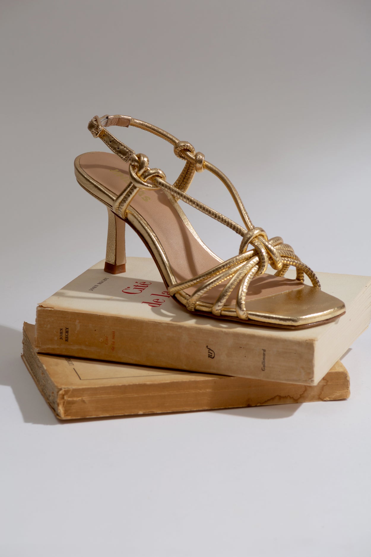 SANTA est un nouveau modèle de sandale pour les événements. Extrêmement confortables, spécialement conçues avec une sangle tubulaire et des nœuds XL, elles sont devenues notre sandale de référence pour les événements inattendus et attendus. Pour celles qui aiment les couleurs métalliques et recherchent un cuir souple et moelleux, nous avons lancé la sandale dorée infaillible.