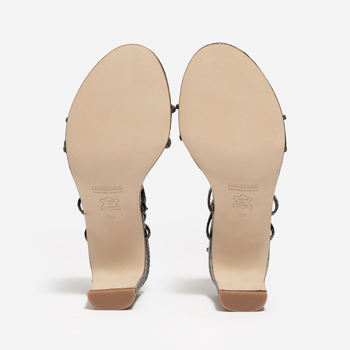 - 100 % cuir de chèvre de qualité supérieure avec une finition métallique fumée et un gaufrage serpent.